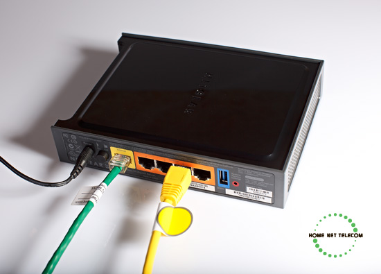 Подключите кабель HNT в синее гнездо роутера с надписью с надписью "WAN" или "Internet" Подключите патч-корд (короткий кабель поставляемый в комплекте с роутером) в один из жёлтых разъемов “LAN” на маршрутизаторе с одной стороны и в разъём сетевой платы вашего компьютера с другой стороны. Включите блок питания роутера в электрическую розетку и нажмите черную кнопку включения питания.