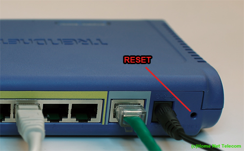 1. Если Вы осуществляете перенастройку не нового интернет-маршрутизатора, а также ошиблись или у Вас на каком-то этапе, что-то не получается, то Вы можете вернуть роутер к настройкам по умолчанию. Для этого, при включенном питании роутера, нажмите на 10-15 секунд тонким предметом (скрепкой или заточенным карандашом) на кнопку RESET (см. фото):