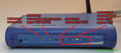 Теперь проверим соответствующую индикацию на передней панели интернет-маршрутизатора. (см.фото)